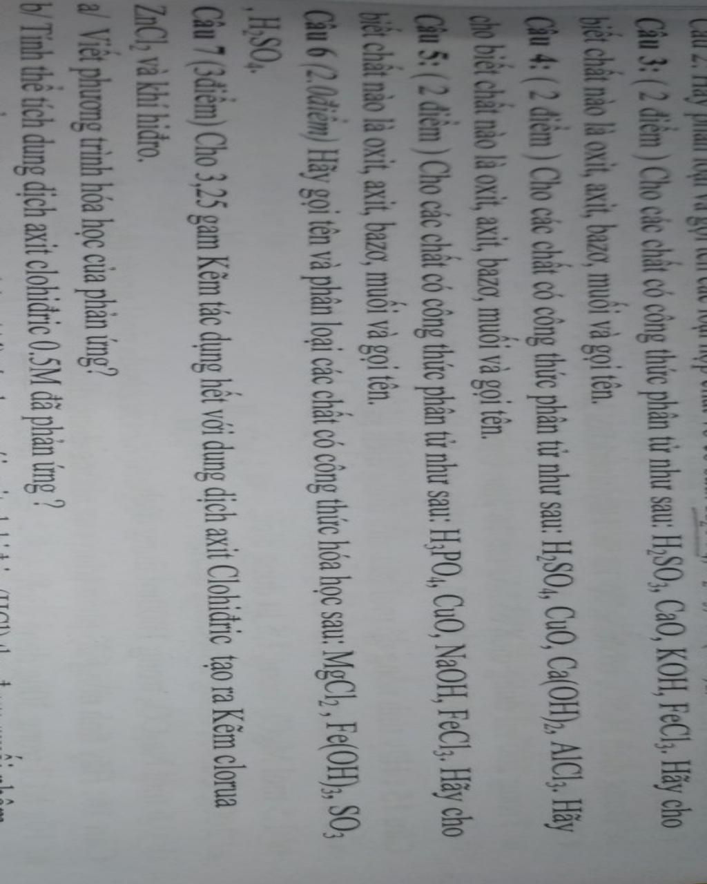 Bazơ : `Ca(OH)_2` : Canxi hiđroxit