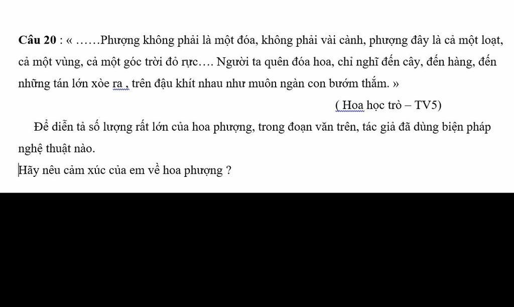 `->` Tác giả đã sử dụng biện pháp nghệ thuật so sánh để miêu tả số lượng của hoa phượng. So sánh hoa phượng với muôn ngàn con bướm thắm, giúp người đọc cảm nhận được hoa phượng nở rất nhiều.
