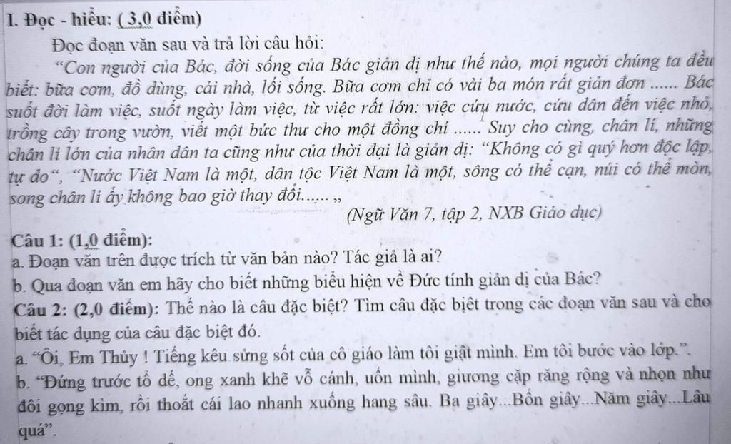 * Câu đặc biệt là câu không cấu tạo theo mô hình chủ ngữ - vị ngữ.