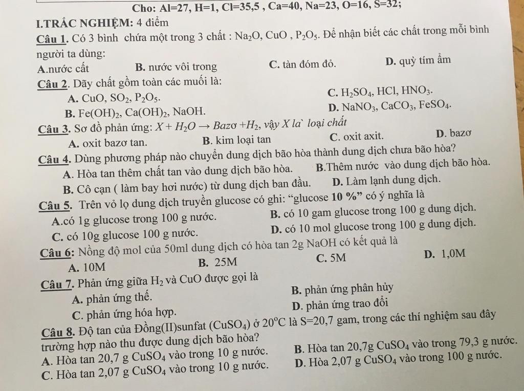 Nhìn vào các đáp án ta thấy `m_{CuSO_4}= 20,7g` và `2,07g`