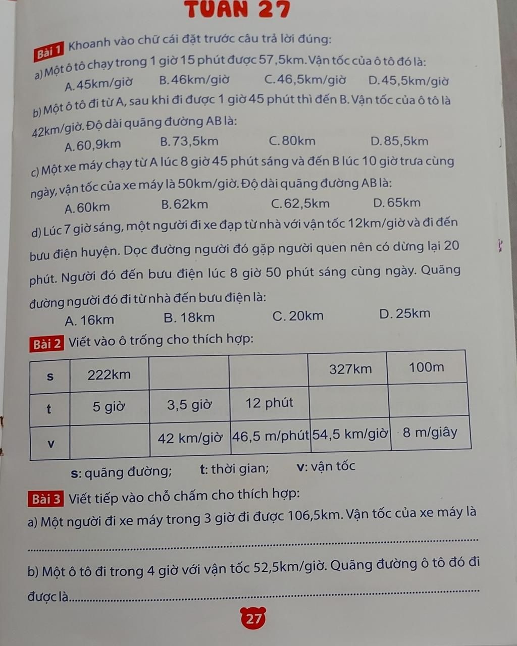 1 b 2 b 3 c 4 b ; 44,4 km/h 147km 558km 6h 12,5 giây ; 35,5 km/h 210km