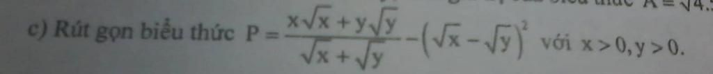 `P=(x\sqrt{x}+y\sqrt{y})/(\sqrt{x}+\sqrt{y})-(\sqrt{x}-\sqrt{y})^2` `(x;y>0)`
