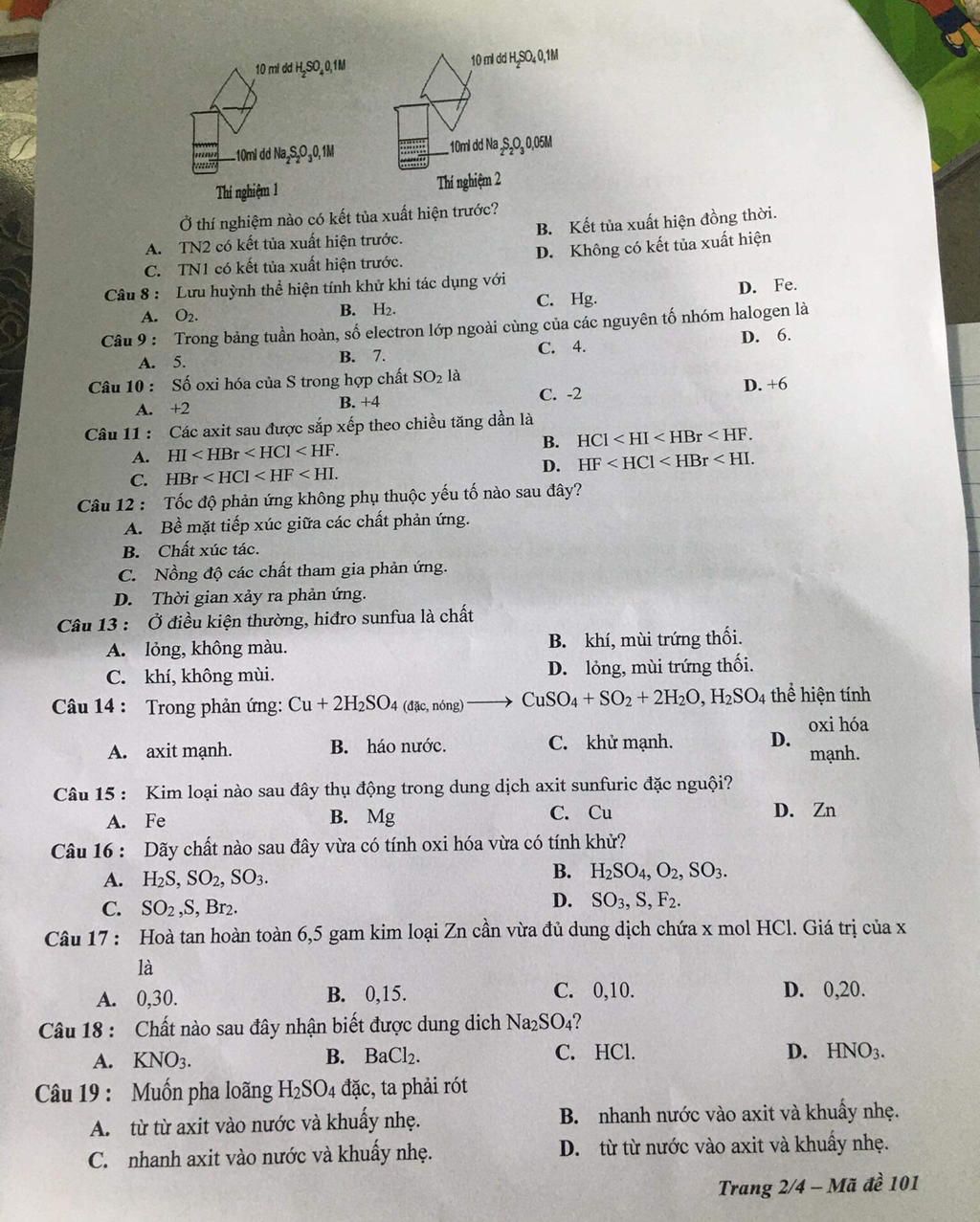 Giải thích: $\mathop{S}\limits^{+4}$$\mathop{O_2}\limits^{-2}$