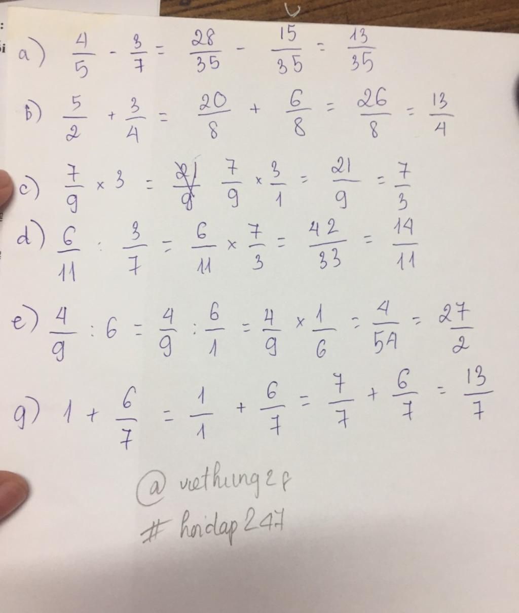 Đối với phép chia thì nhân vế 1 với phần đảo ngược của vế 2 và nhân như nhân như bình thường rồi rút gọn kết quả