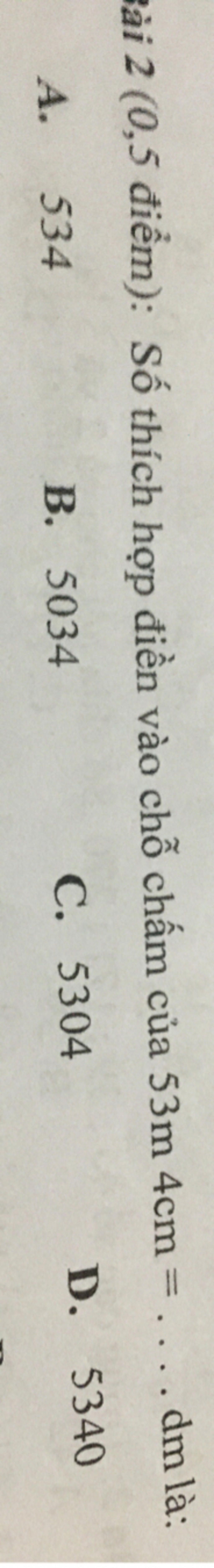 => `53m 4 cm = 530 + 0,4 = 530,4 dm`