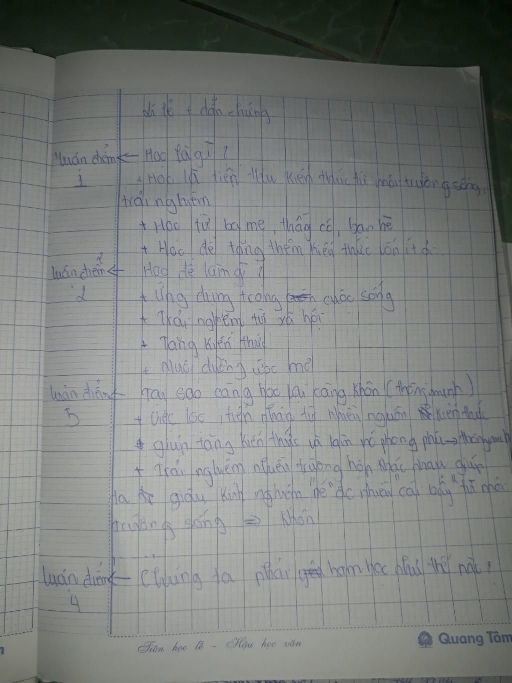 Học hỏi không phải là chuyện ngày một, ngày hai mà là chuyện của cả đời người. ”Học ở trường, học trong sách vở, học lẫn nhau và học ở cuộc sống”. Việc nâng cao hiểu biết là rất quan trọng và cần thiết đối với mỗi người. Vì vậy chúng ta phải có mục đích và phương pháp học tập đúng đắn để đạt được hiệu quả cao. Có tri thức, chúng ta mới làm chủ được bản thân, mới đóng góp hữu ích cho gia đình, xã hội. ”Học vấn làm đẹp con người”-đó cũng là điều ông cha muốn nhắn gửi đến chúng ta. Câu tục ngữ : “Đi một ngày đàng, học một sàng khôn” là lời khuyên quý báu của người xưa; đến nay nó vẫn là bài học quý báu đối với tuổi trẻ trên con đường tạo dựng sự nghiệp