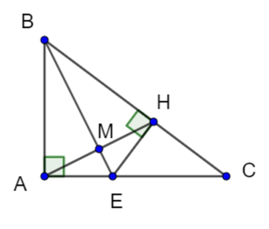 b) Gọi `M` là giao điểm của `BE` và `AH`