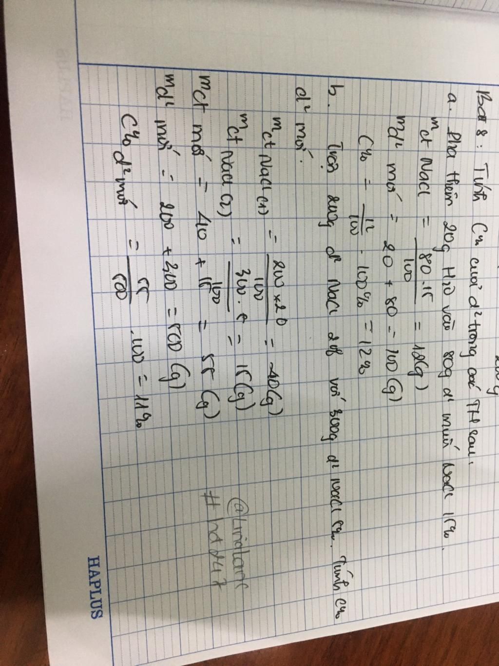 b) Trộn 200g dung dịch muối ăn nồng độ 20% với 300g dung dịch muối này có nồng độ 5%