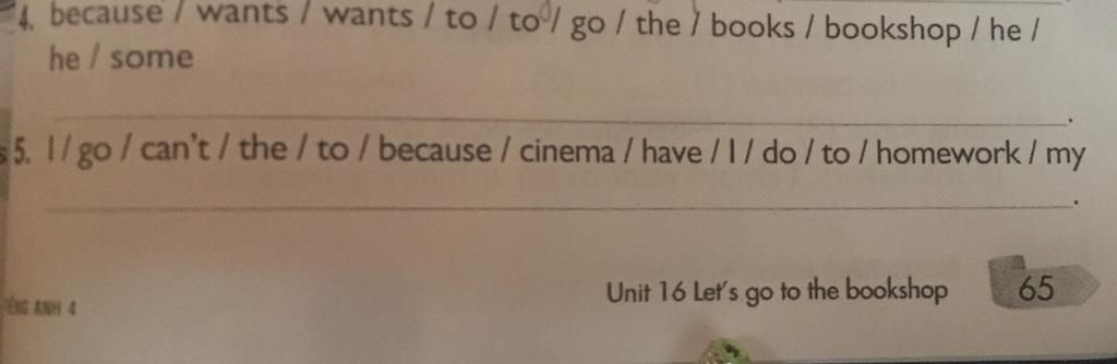 - Dịch: Anh ấy muốn đến hiệu sách vì anh ấy cần sách