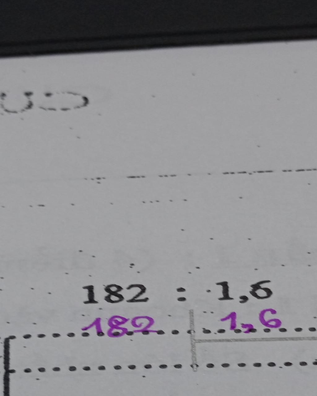 Kết quả của phép chia 182 : 1,6 = 113,75