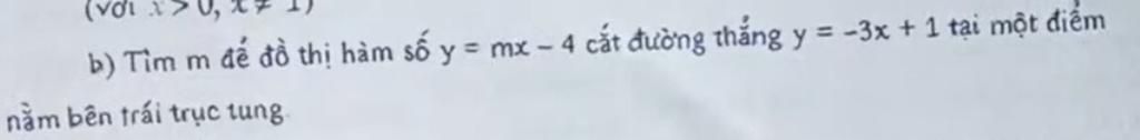 Để `2` đường thẳng cắt nhau tại điểm nằm bên trái trục tung thì :
