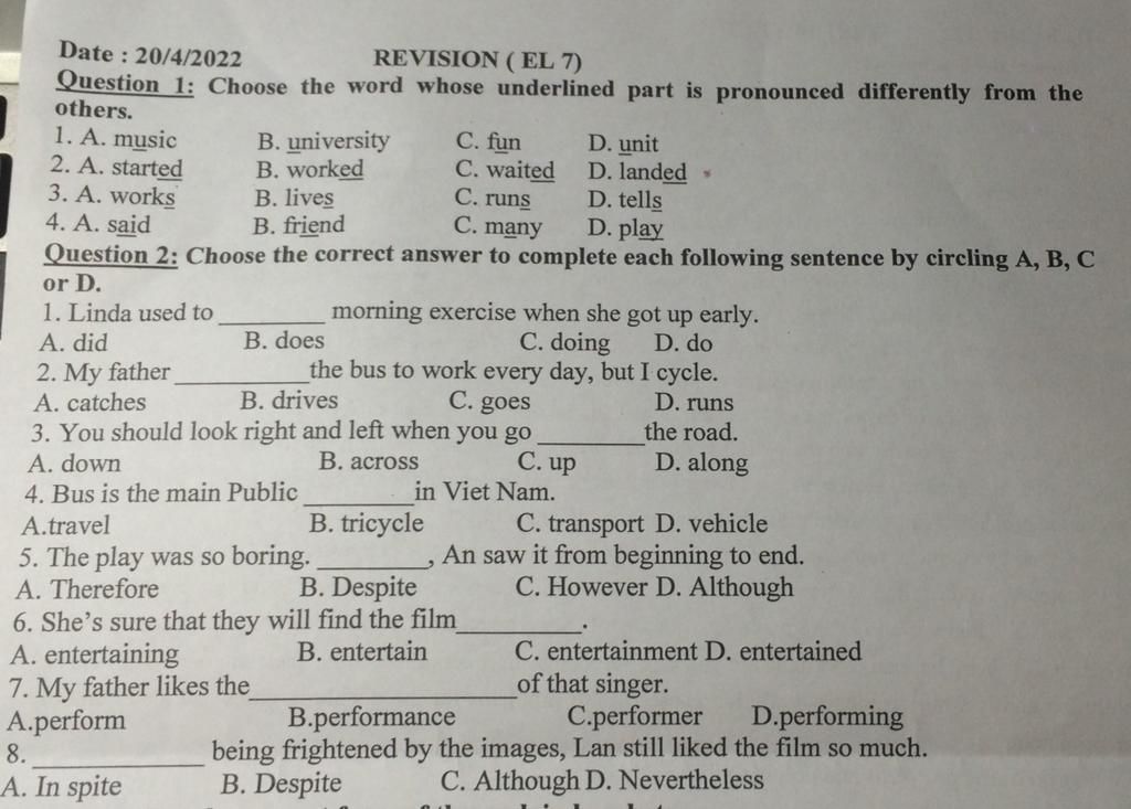 `-` Âm /ʌ/, còn lại âm /ju:/.