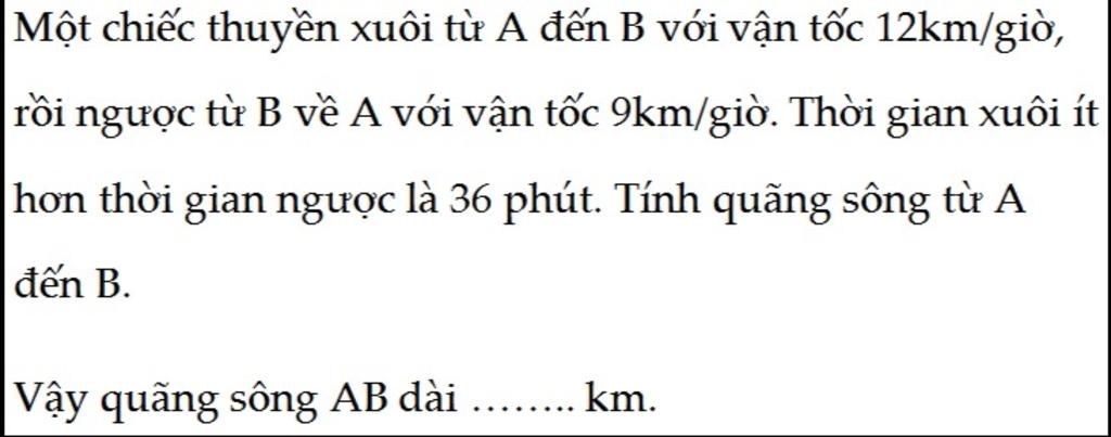 hơn thời gian ngược là 36 phút. Tính quãng sông từ A