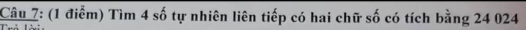 Vì `10000<24024` nên `4` số cần tìm phải có đủ điều kiện là: số có `2` chữ số và lớn hơn `10.`