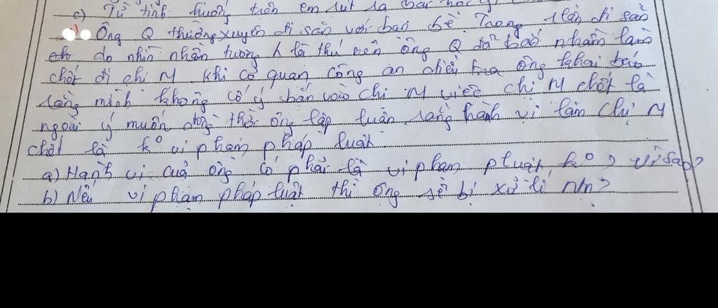 b) Nếu vi phạm pháp luật thì ông Q sẽ bị phạt tiền và ngồi tù, không những thế ông còn phải đền bù về tổn thất tinh thần cho gia đình của chị M