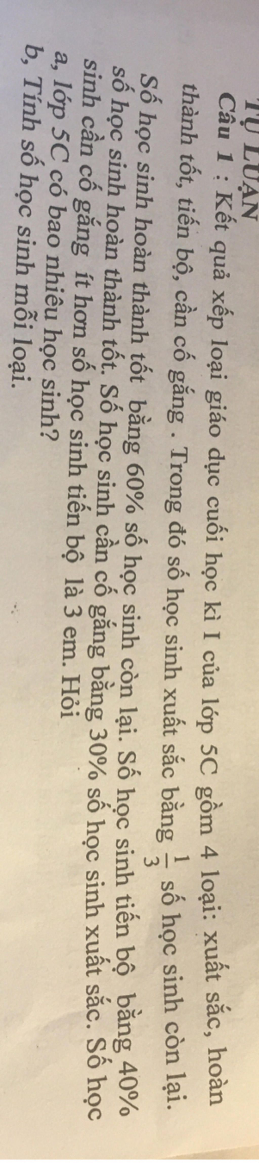 Câu 1: Kết quả xếp loại giáo dục cuối học kì I của lớp 5C gồm 4 loại: xuất sắc, hoàn