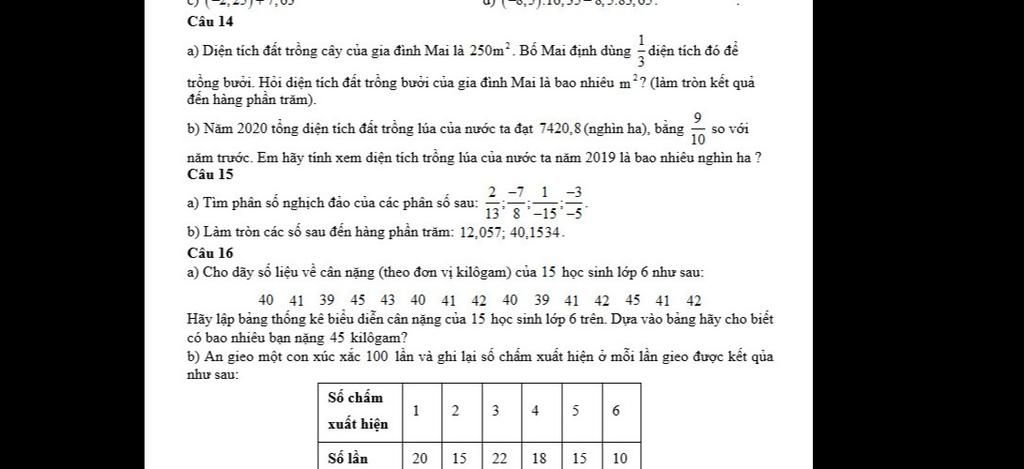 a) Diện tích đất trồng cây của gia đình Mai là 250m. Bổ Mai định dùng diện tích đó để