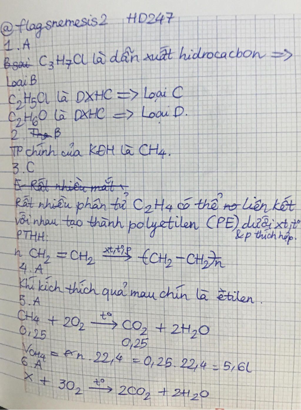 $CH_4$ không có phản ứng trùng hợp => C sai