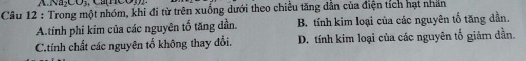 Giải thích: Do số lớp e tăng ⇒ dể nhường e ⇒ tính kim loại tăng