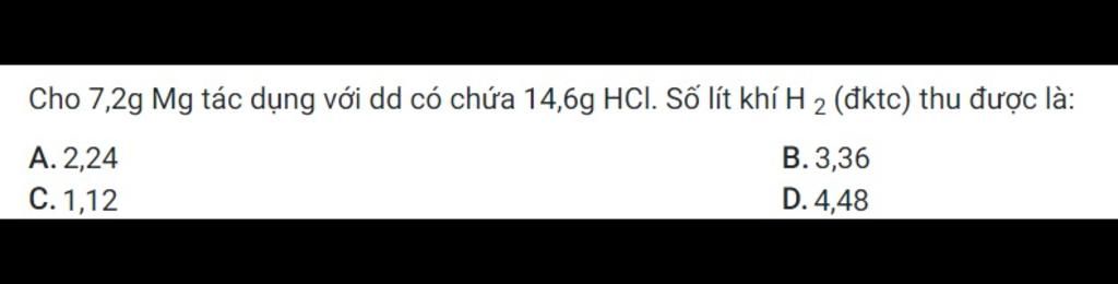 Phương trình phản ứng: `Mg + 2HCl -> H_2 + MgCl_2`.