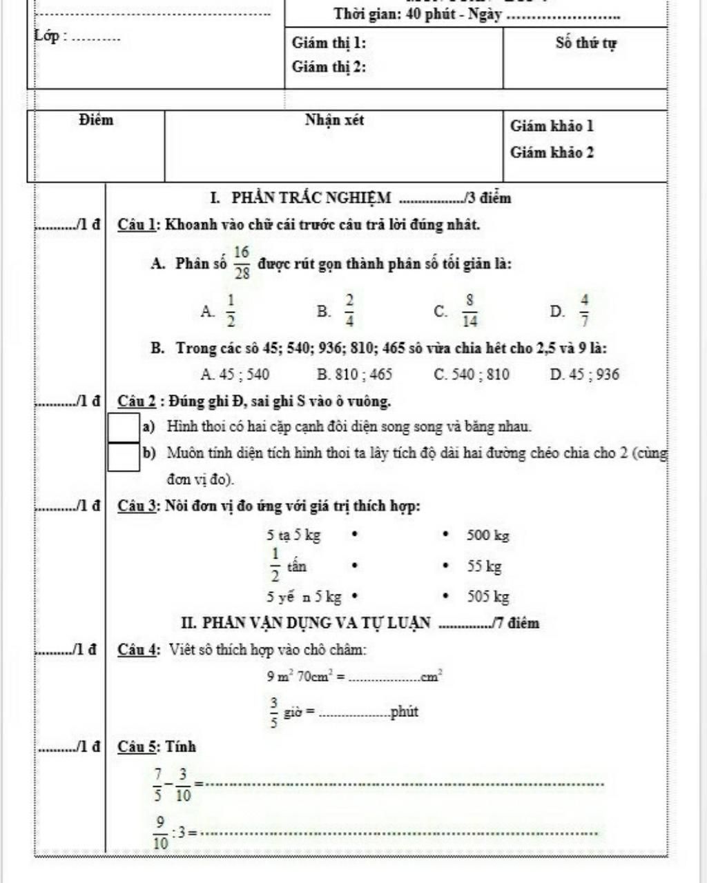 Thời gian: 40 phút - Ngày