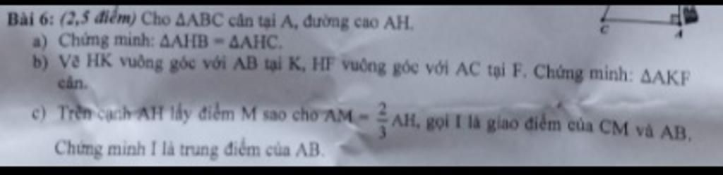 Mà $AM=\dfrac{2}{3}AH$ (gt)