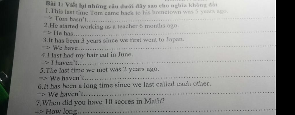 `1`.Tom hasn't come back to his hometown for 5 years