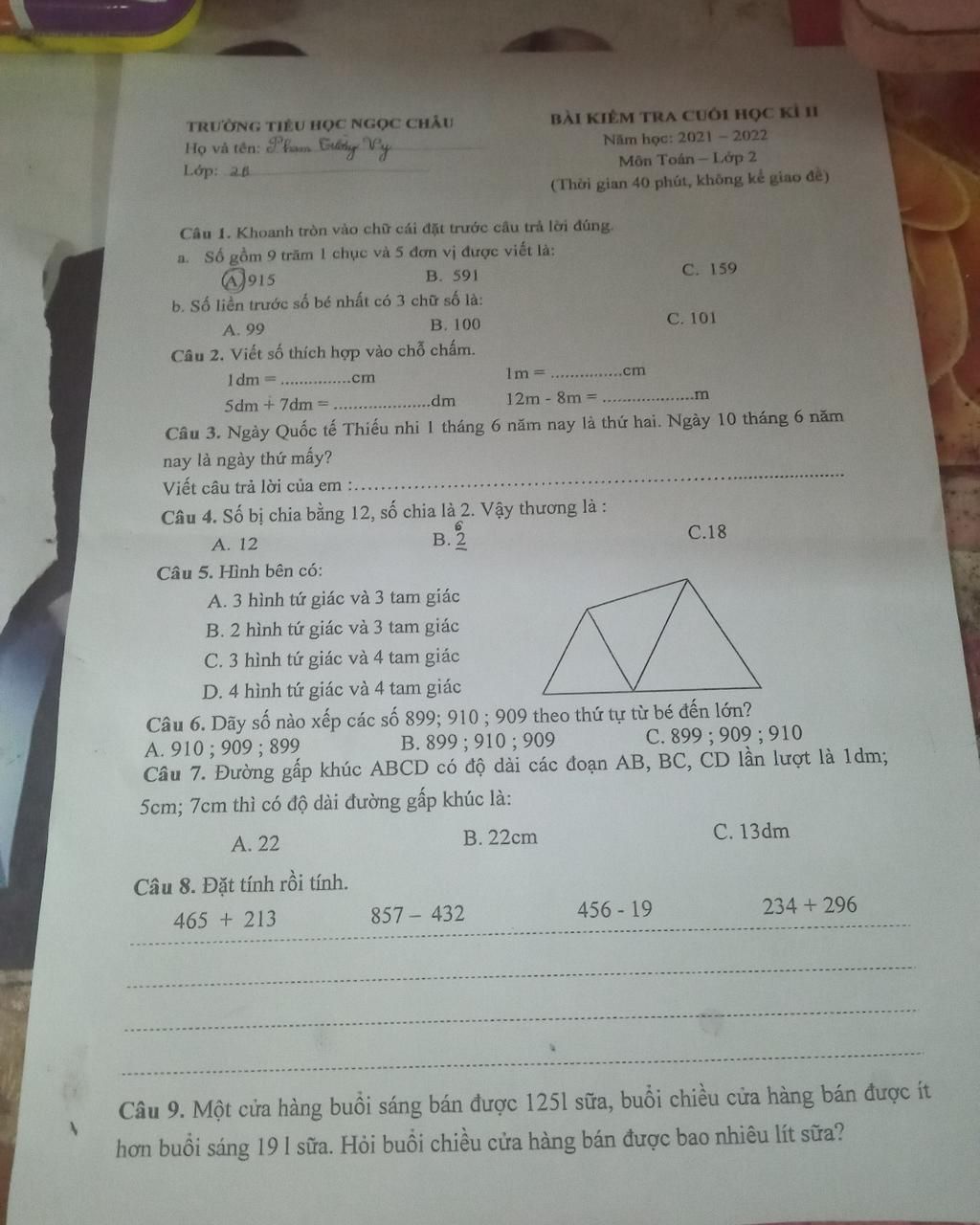 Nhưng đề bài lại bảo là liền trước 100 là bao nhiêu: