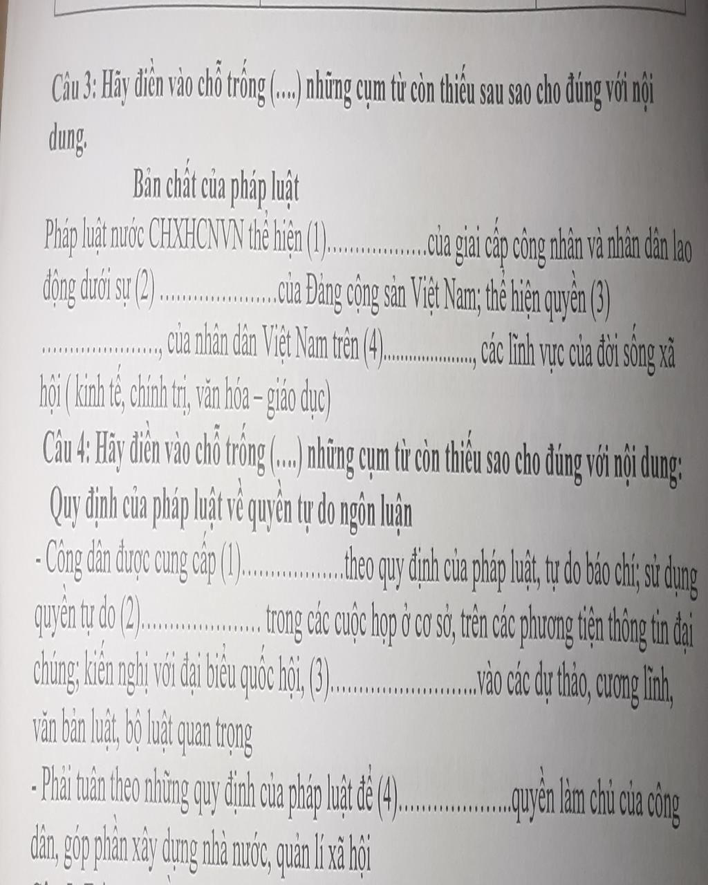 Cầu 3: Hãy điển vào chỗ trông (..) nhìng cụm từ còn thiêu sau sao cho đùng với nội