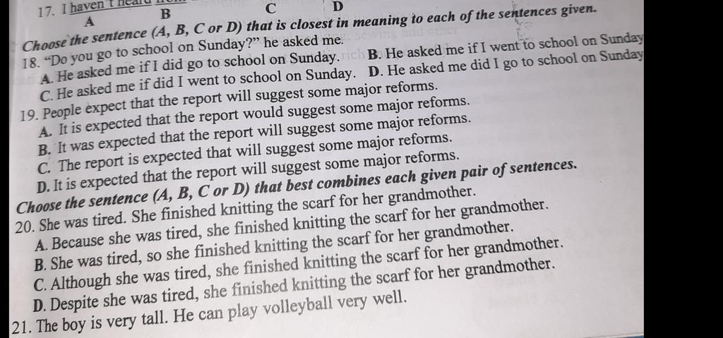 - Đáp án A và B -> Không hợp về mặt nghĩa