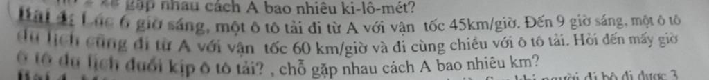 Ô tô du lịch đuổi kịp ô tô tải lúc :