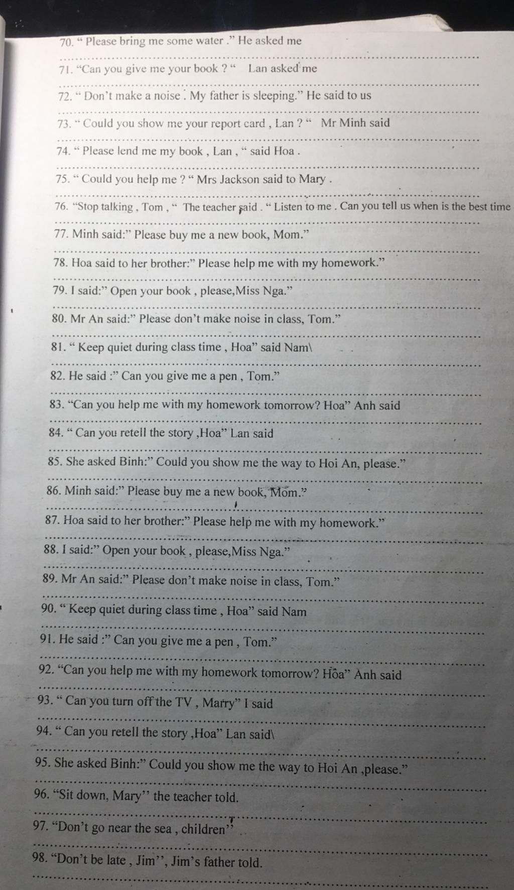 74. "Please lend me my book, Lan, "said Hoa.