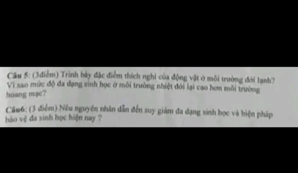 * Động vật: có lớp mỡ dày, lông dày, lớp lông không thấm nước, một số động vật ngủ đông hay di cư tránh mùa đông lạnh.
