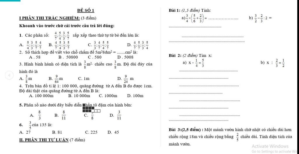 1. Chọn D vì 5/4>1 ; 3/3=1 còn cả 4/7 và 5/7<1 mà 5/7>4/7