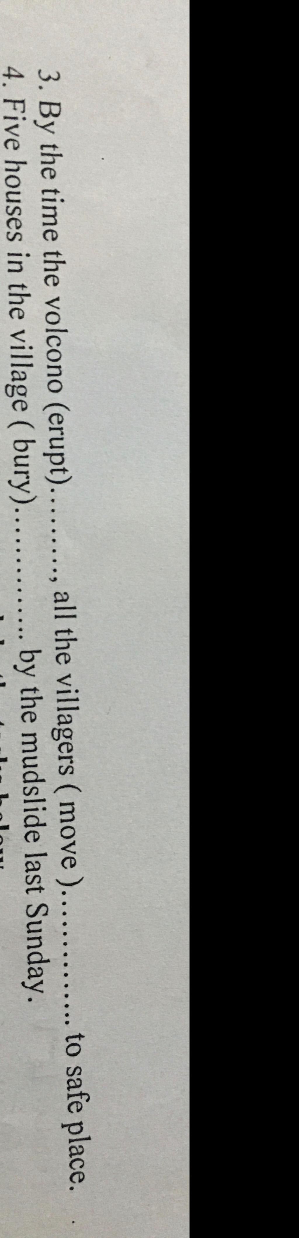 Dịch: Vào thời điểm núi lửa phun trào, tất cả dân làng đã di chuyển đến nơi an toàn.