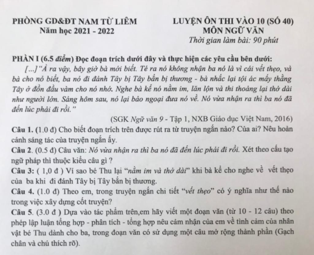 Tình phụ tử thật hiếm gặp trong văn chương nhưng không vì thế một tác phẩm đề cao tình phụ tử lại bị chết yểu, mà hầu hết tác phẩm nào cũng thành công. Ta bắt gặp nhân vật bé Thu với một tình yêu cha vô bờ, và đặt trong hoàn cảnh chiến trường cam go và cá liệt, tình cảm ấy lại nhân lên gấp bội phần. Xa con gái tám năm trời lên đường ra trận vì độc lập dân tộc, ông Sáu cảm tháy dày vò và day dứt trong ba ngày nghỉ phép. Bé Thu với tính cách bướng bình, hay khước từ tình cảm đến từ người cha ngày cha đi đã bộc lộ hết tình yêu thương bấy lâu dồn nén. Em không cho ba đi mà níu ba ở lại, qua loạt các hành động như hôn trán, hôn tóc và hôn lên cả vết thẹo đáng sợ do chiến tranh để lại. Đôi vai nhỏ khẽ run lên bần bật, mẫu thuẫn nội tâm và sự khước từ tình cảm nay đã không còn mà thay vào đó là những giọt nước mắt yêu thương. Có lẽ tình yêu cha, sự mong mỏi nhớ nhung người cha nơi chiến trường đã thúc giục cô bé năm nào trở thành cô giao liên dũng cảm. Dù anh Sáu chẳng thể thực hiện lời hứa " ba đi rồi ba về với con " nhưng sâu thẳm trong 1 trái tim kiên cường là hình ảnh người cha với tình yêu con vô bờ .
