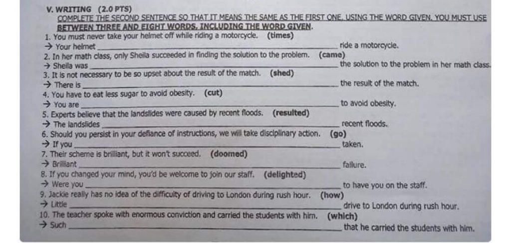 COMPLETE THE SECOND SENTENCE SO THAT IT MEANS THE SAME AS THE FIRST ONE. USING THE WORD GIVEN. YOU MUST USE