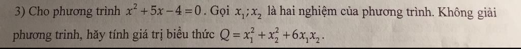 $$Q=x_1^2+x_2^2+6x_1x^2\\=(x_1^2+2x_1x_2+x_2^2)+4x_1x_2\\=(x_1+x_2)^2+4x_1x_2\\=(-5)^2+4.(-4)=9$$