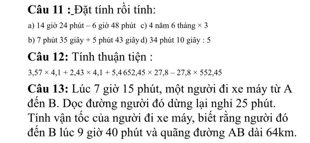 Câu 13: Thời gian đi của người đi xe máy (không tính thời gian nghỉ) là;