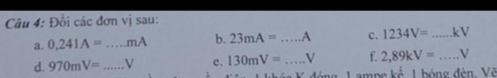 a/ 241mA b/0.023A c/1.234kV d/0.97V e/0.13V f/ 2.890V