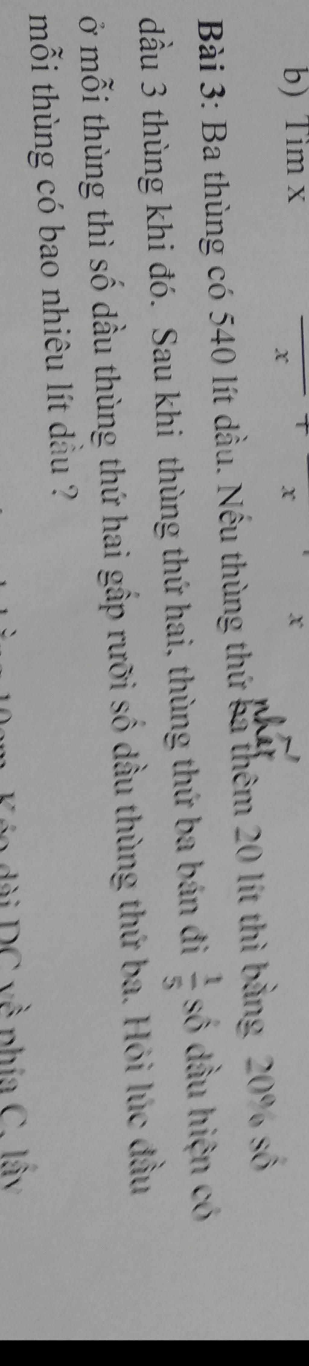 Lúc đầu thùng `3` có số lít dầu là :