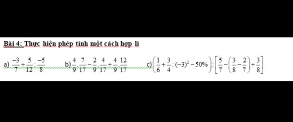 `a,` $\dfrac{-3}{7}$ `+` $\dfrac{5}{12}$ `÷` $\dfrac{- 5}{8}$