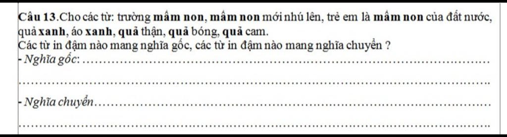 `+)` Nghĩa chuyển: Trương mầm non, Trẻ em là mầm non của đất nước, Quả thận, Quả bóng.