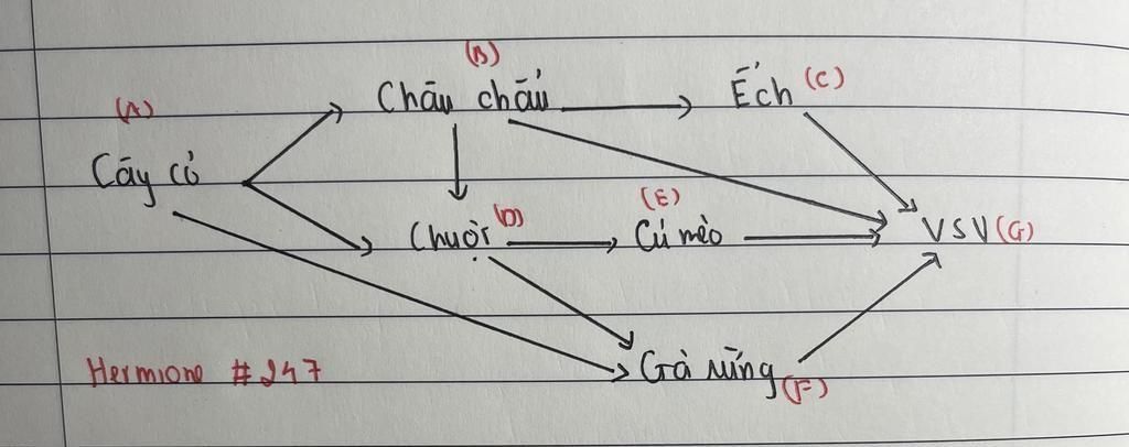 Trong đó: Sinh vật sản xuất ( thực vật,...) và sinh vật phân giải ( VSV, nấm,...) luôn là mắt xích chung.