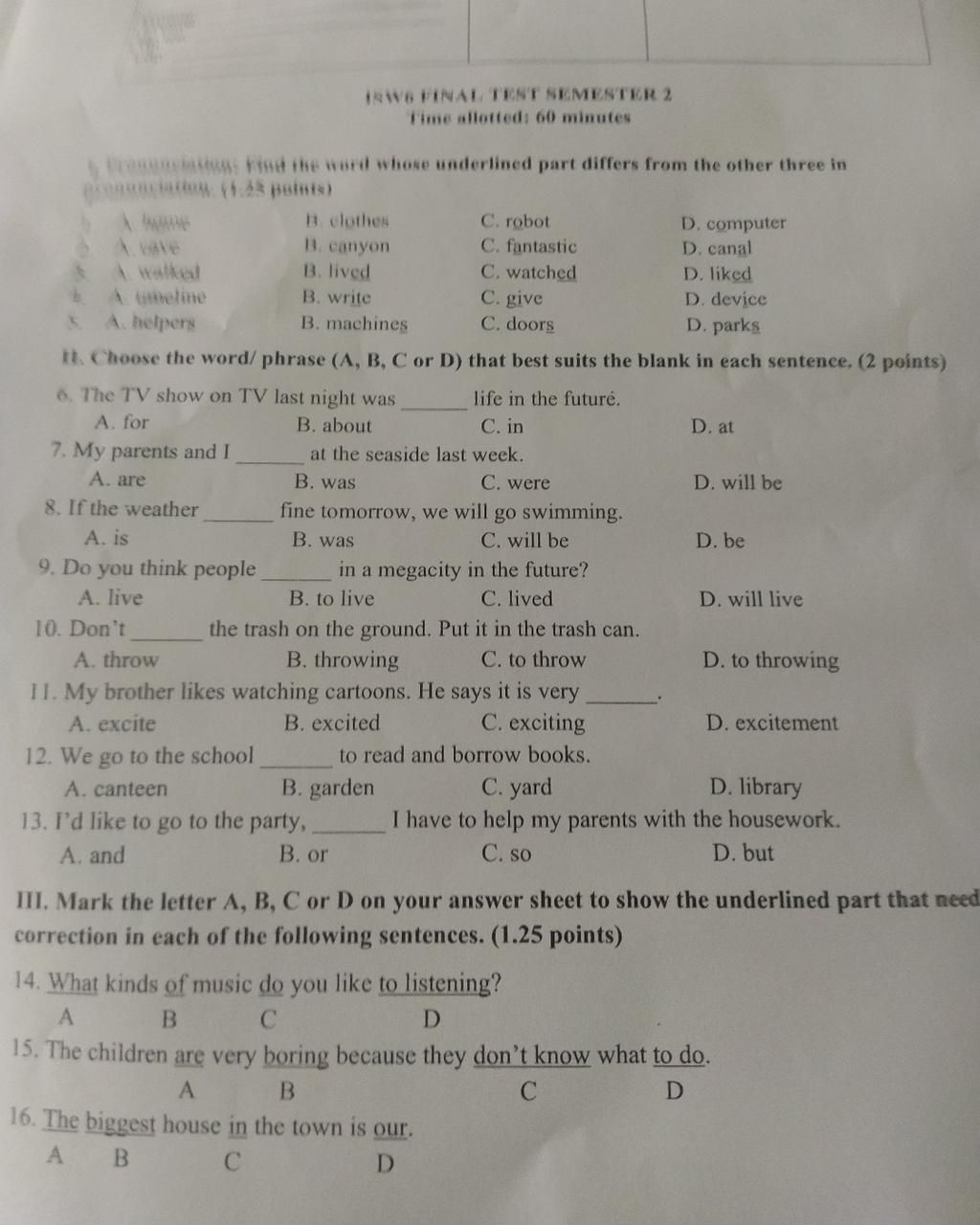 1. D vì computer phát âm là /ə/ còn các từ còn lại phát âm là /əʊ/