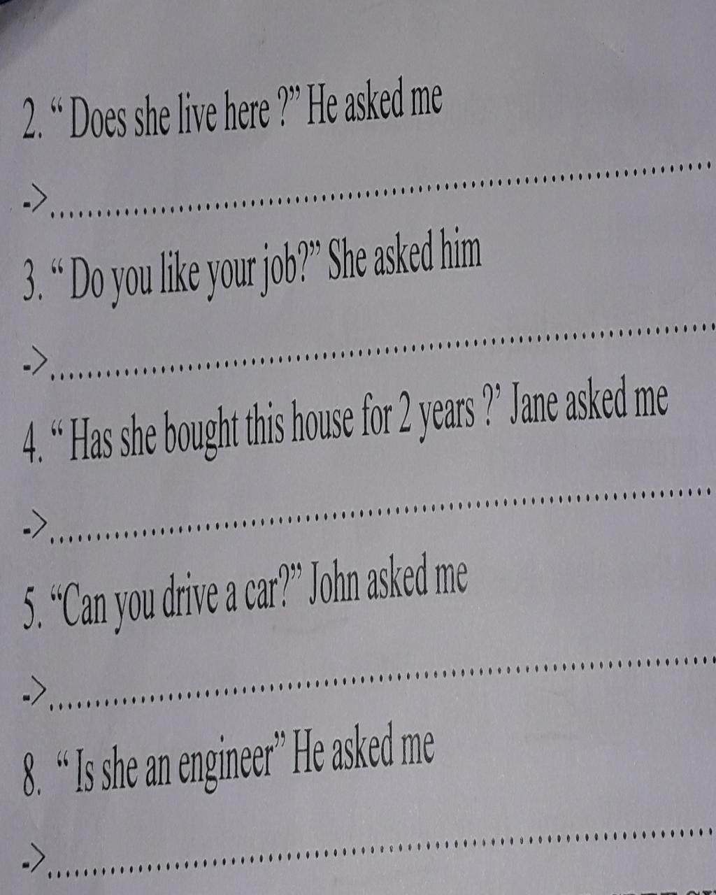 `=>` S + asked + O + if / whether + S + V ( lùi thì )