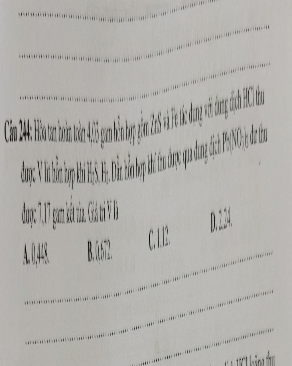 Theo PT: $n_{ZnS}=n_{H_2S}=n_{PbS}=0,03(mol)$