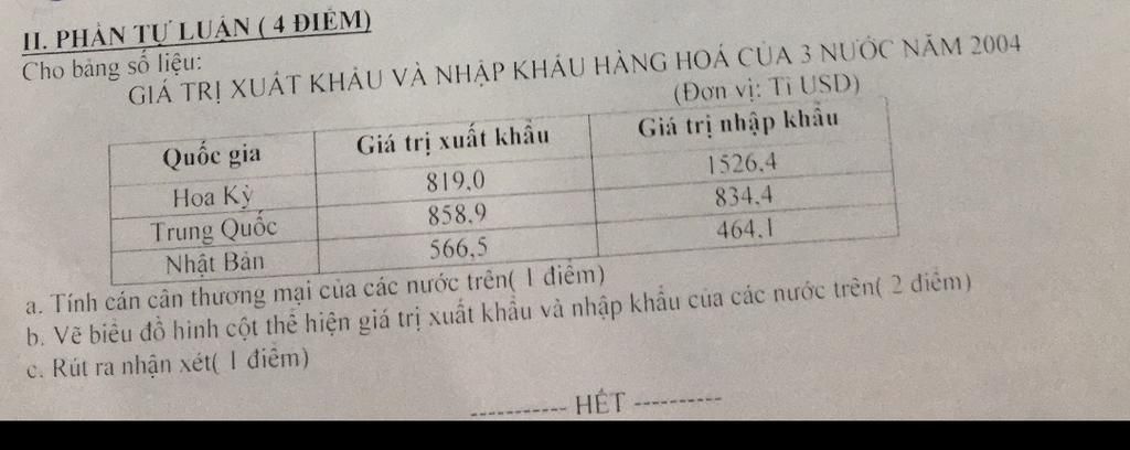 ( * công thức tính cán cân thương mại= giá trị xuất khẩu - giá trị nhập khẩu)