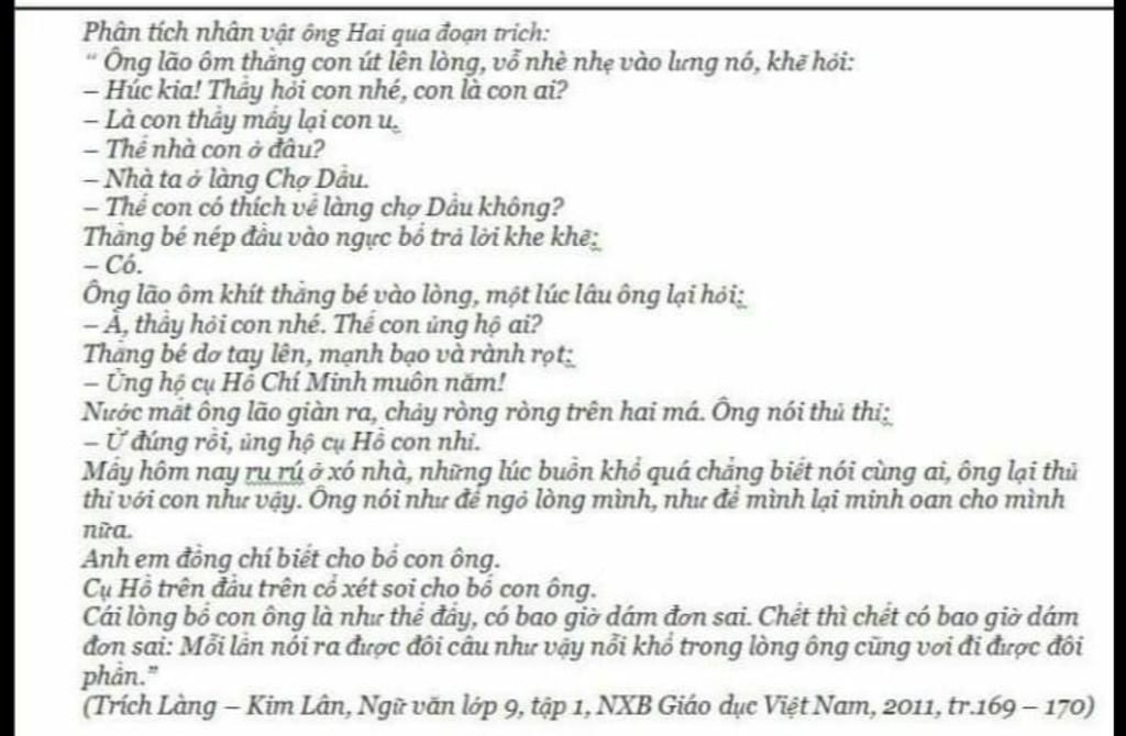 Phân tích nhân vật ông Hai qua đoạn trich: