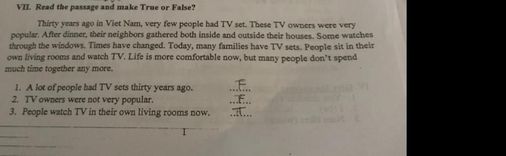 $\rightarrow$Có dẫn chứng câu 1: Thirty years ago , very few people had TV set